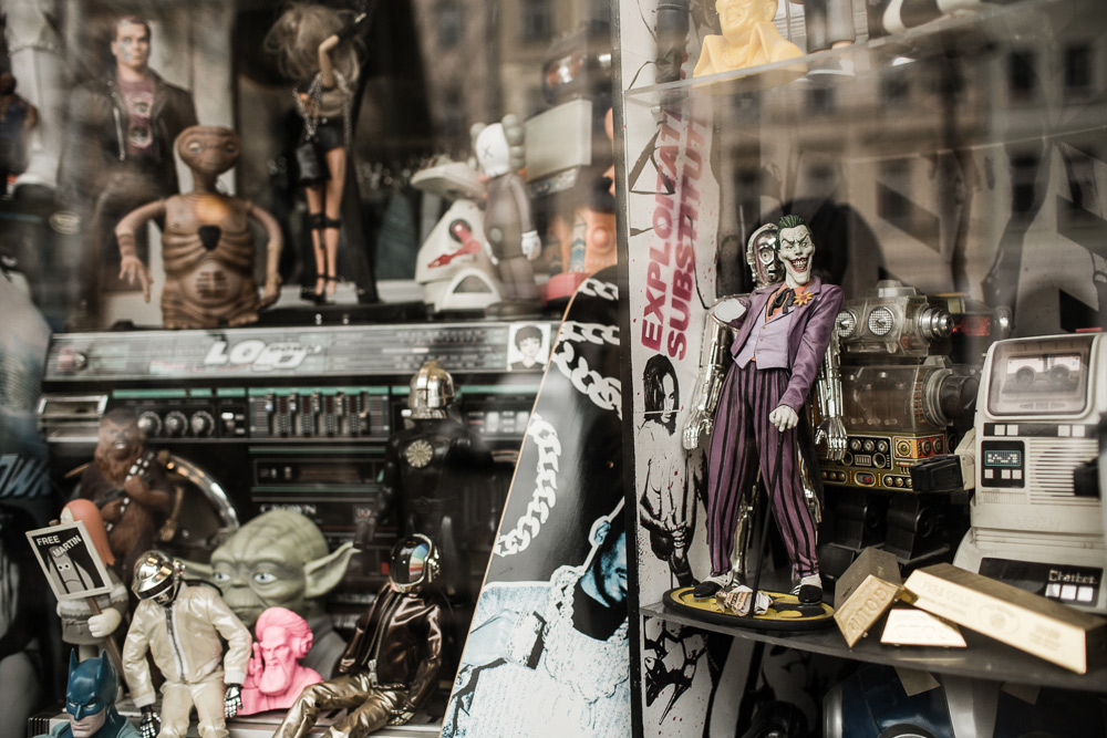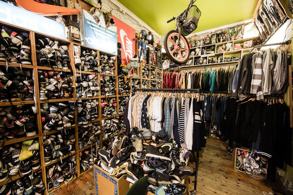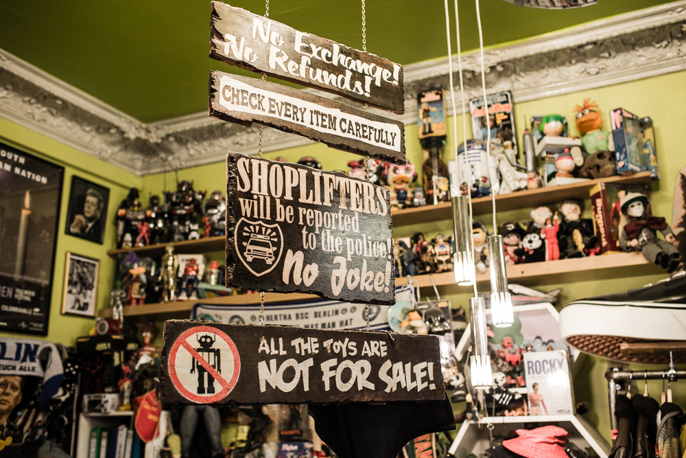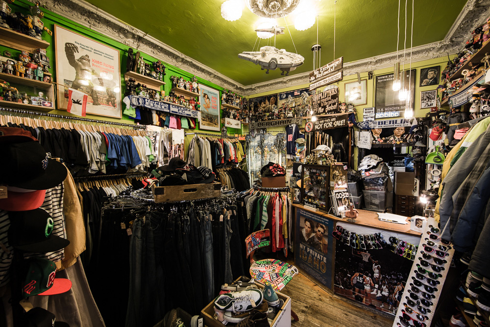 That was the beginning, our first store. It's packed with sneakers, T-shirts, Jeans and pretty much everything else that one can wear. Because the shop is only roughly organised, it's probably best to come with a little time and dig through the stuff. The walls and shelves are filled with toy robots, boomboxes and Star Wars Collectibles – all the stuff I wanted so desperately when I was a little kid in East Berlin and now it's all mine!