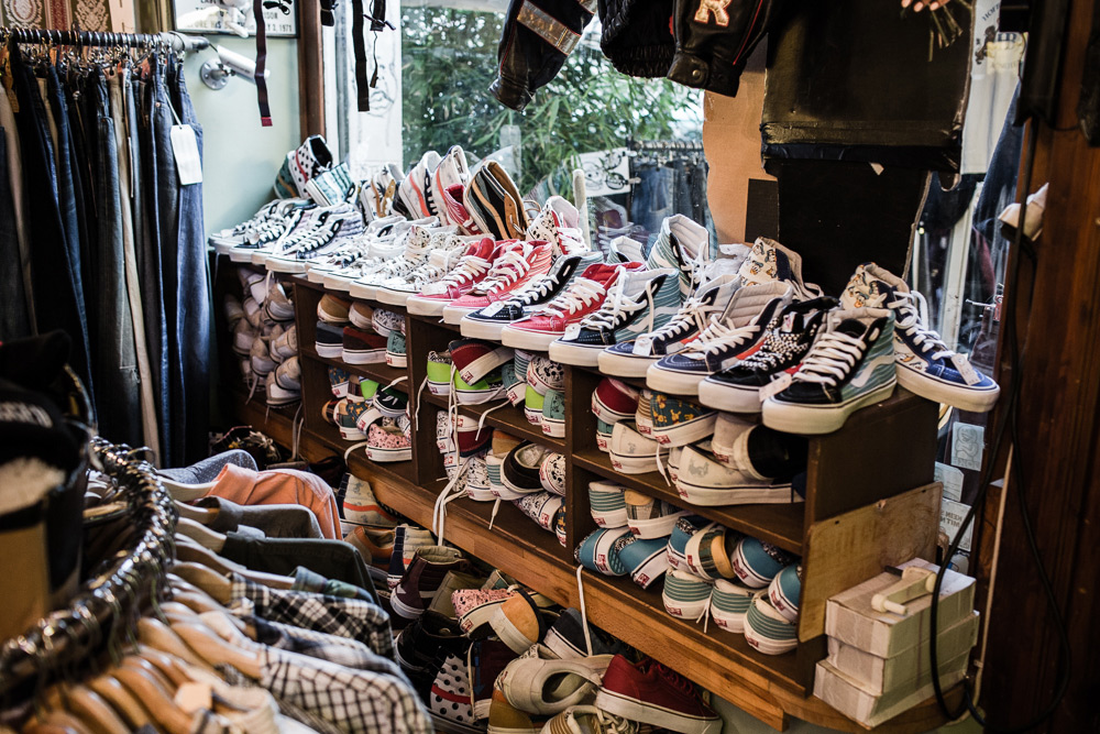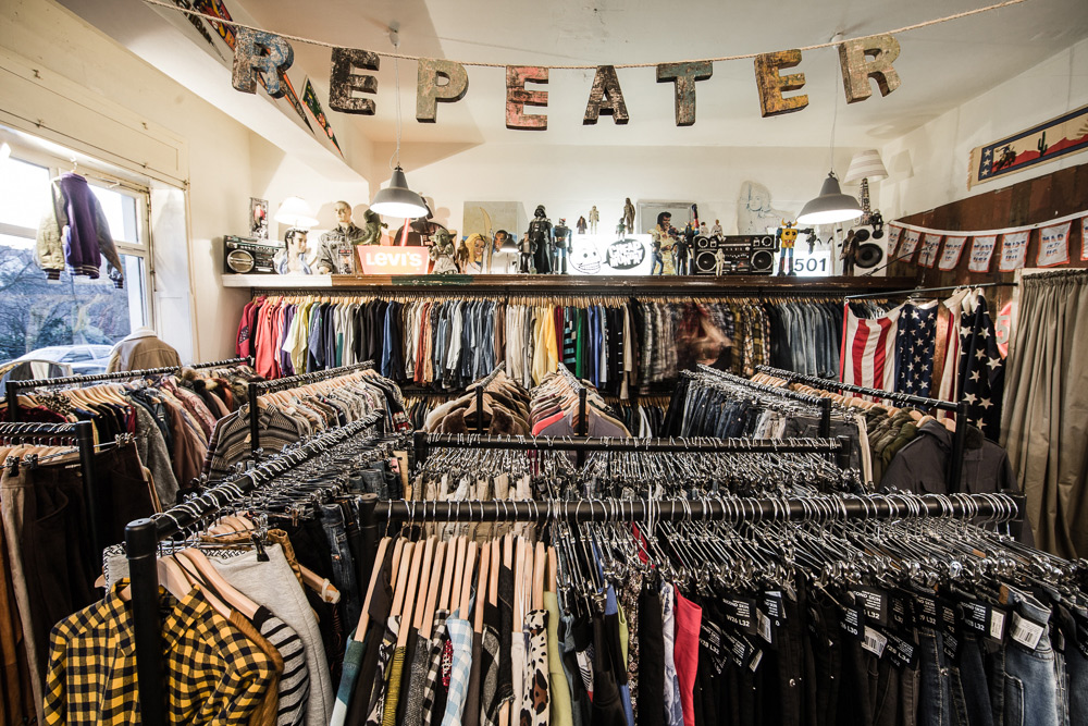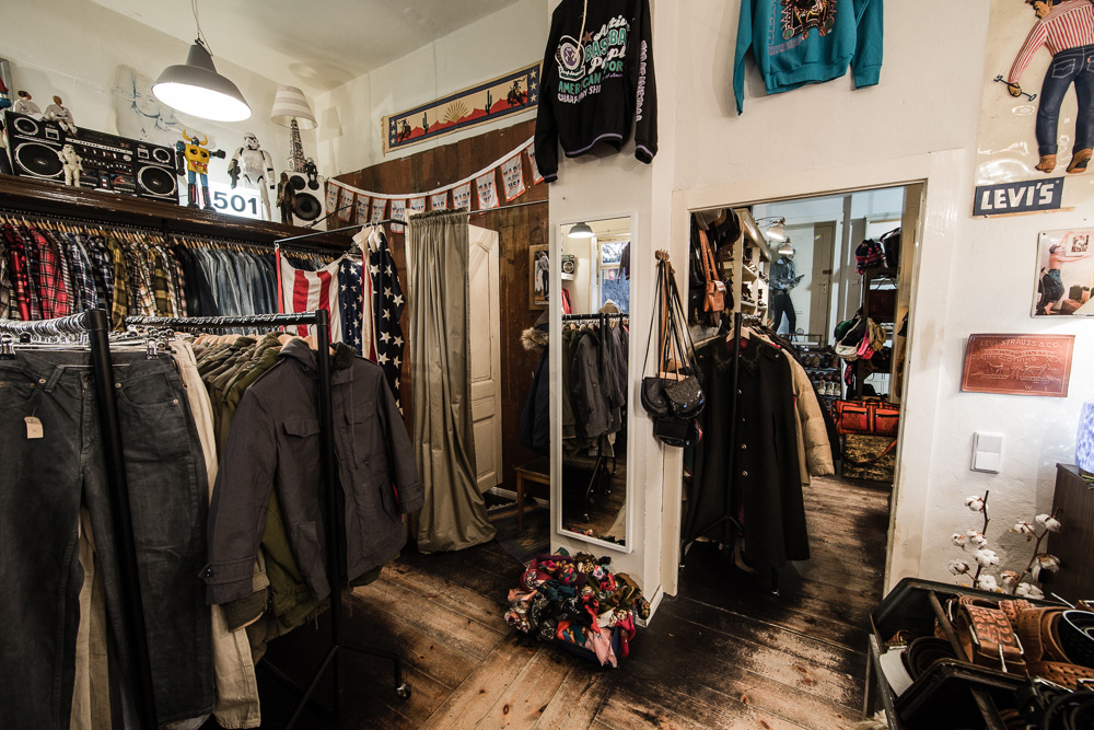 This store stocks sneakers by Adidas, Nike, Puma, Converse, Reebok, New Balance ... used denim by Levis, Nudie, Lee, Wrangler, Cheap Monday ... shirts and jackets by Fred Perry, Stüssy, Carhartt, Irie Daily and many many other brands. Vintage leather jackets, dresses and plenty of shoes.